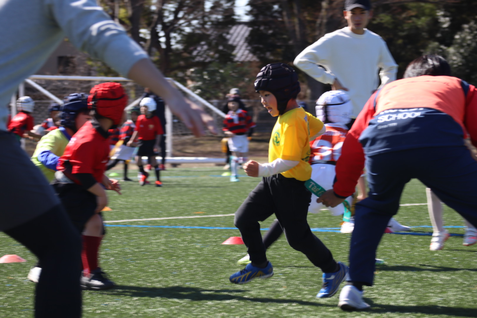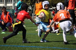 幼児期のラグビーは、勝ち負けだけではなく、走る・つかむ・かわす・仲間を助ける