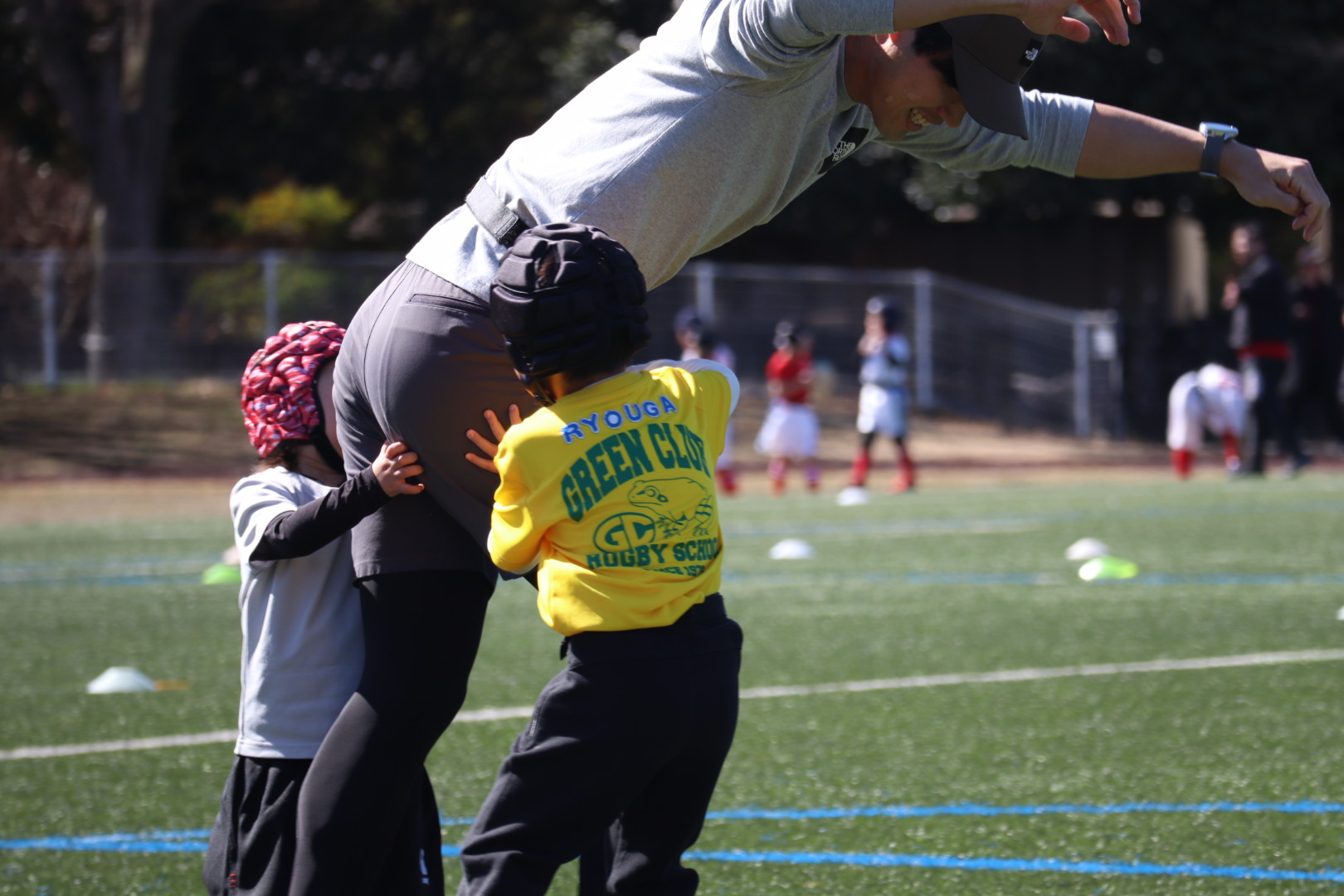 元気いっぱいの子どもたちと一緒に、グラウンドでラグビーを楽しみましょう!